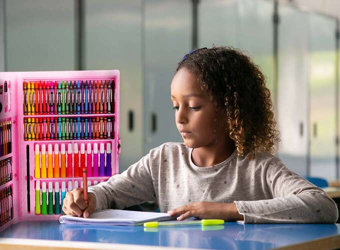 168 ELEMENTOS: utilizando una gran selección de 24 crayones, 24 rotuladores, 48 pasteles al óleo, 48 pasteles para velas, 12 pinturas de acuarela, sacapuntas, lápiz adhesivo, corrector, borrador, hojas de papel A4, crearemos fácilmente lo más sofisticado, creativo y original. obras .